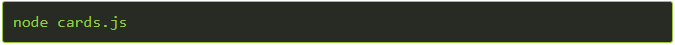 Skapa en ny JavaScript-fil som heter cards.js. Lägg till följande kod, uppdatera den så att den stämmer överens med ditt konto och spara filen.